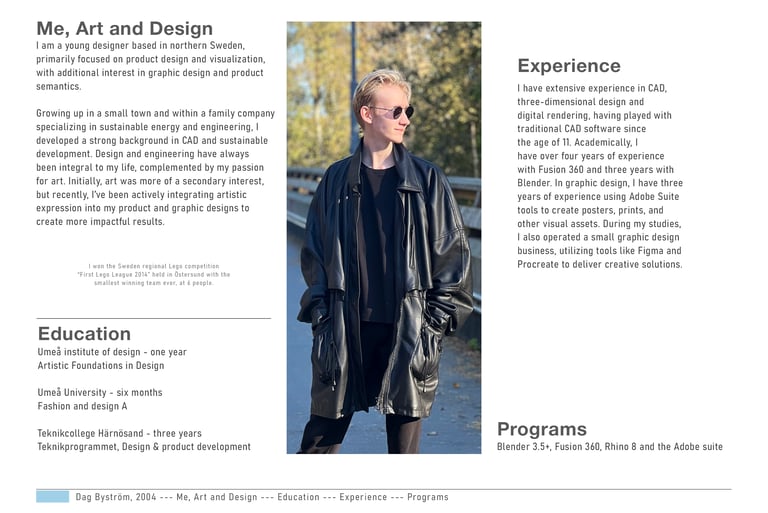 The following is my, Dag Byström's Design Portfolio for 2025. The entierty of the portfolio can be scrolled thurue bellow, but you can also select a colored headline.